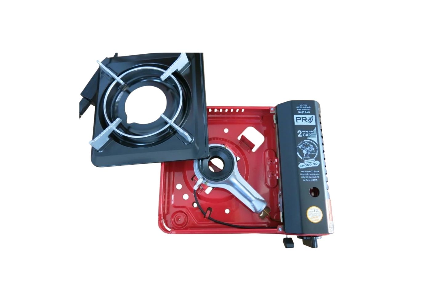 -Thiết kế thông gió 4 mặt. Kiềng bếp có 4 chân đỡ với các hình nấc thang có tác dụng giữ chặt các vật dụng nấu nướng.
