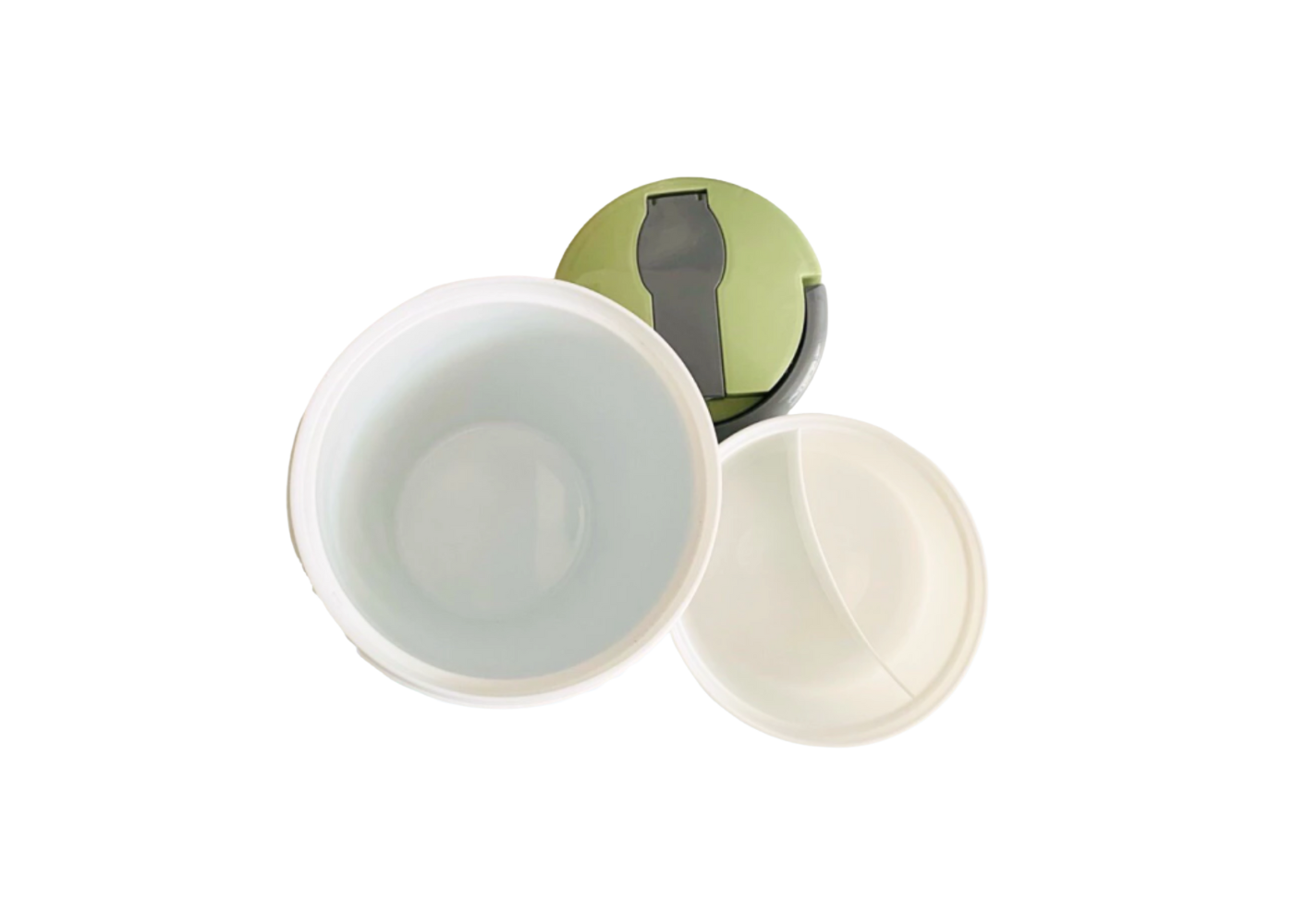 -Có kèm muỗng nhựa nhỏ nhắn tinh tế. Nắp vặn chặt, tránh lọt nước ra bên ngoài. Có ngăn đựng thức ăn, gia vị kèm thêm.