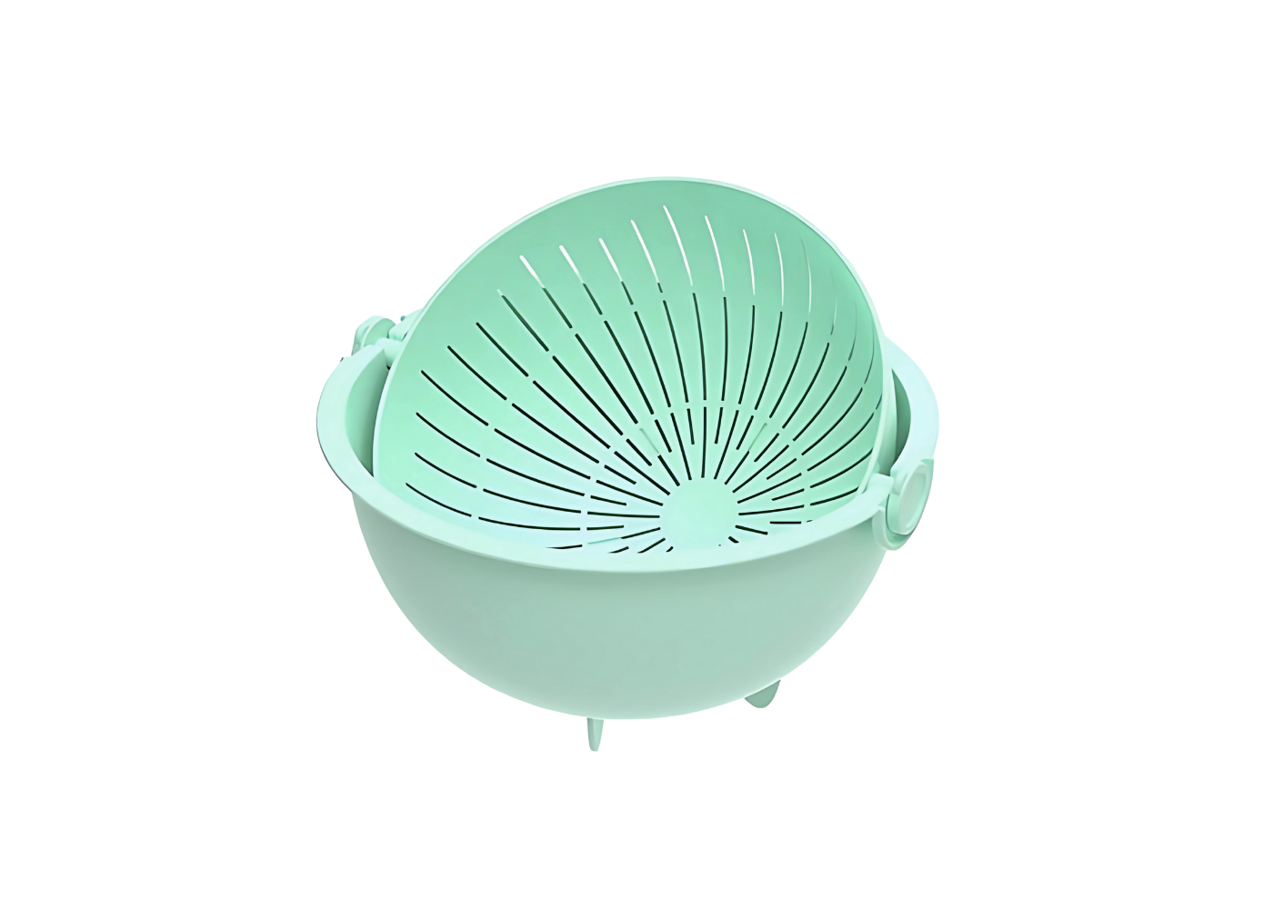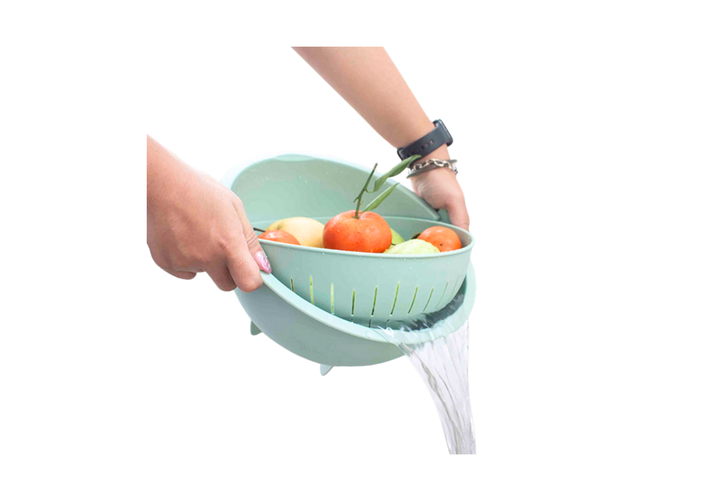 -Sản phẩm có thiết kế thông minh với rổ và thau tách rời, có thể xoay nghiêng giúp nhanh chóng loại bỏ nước ra khỏi rau, trái cây.....một cách dễ dàng.