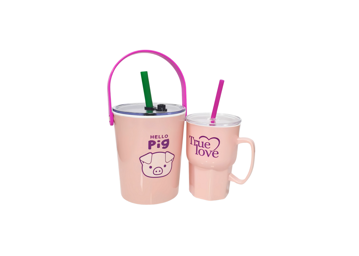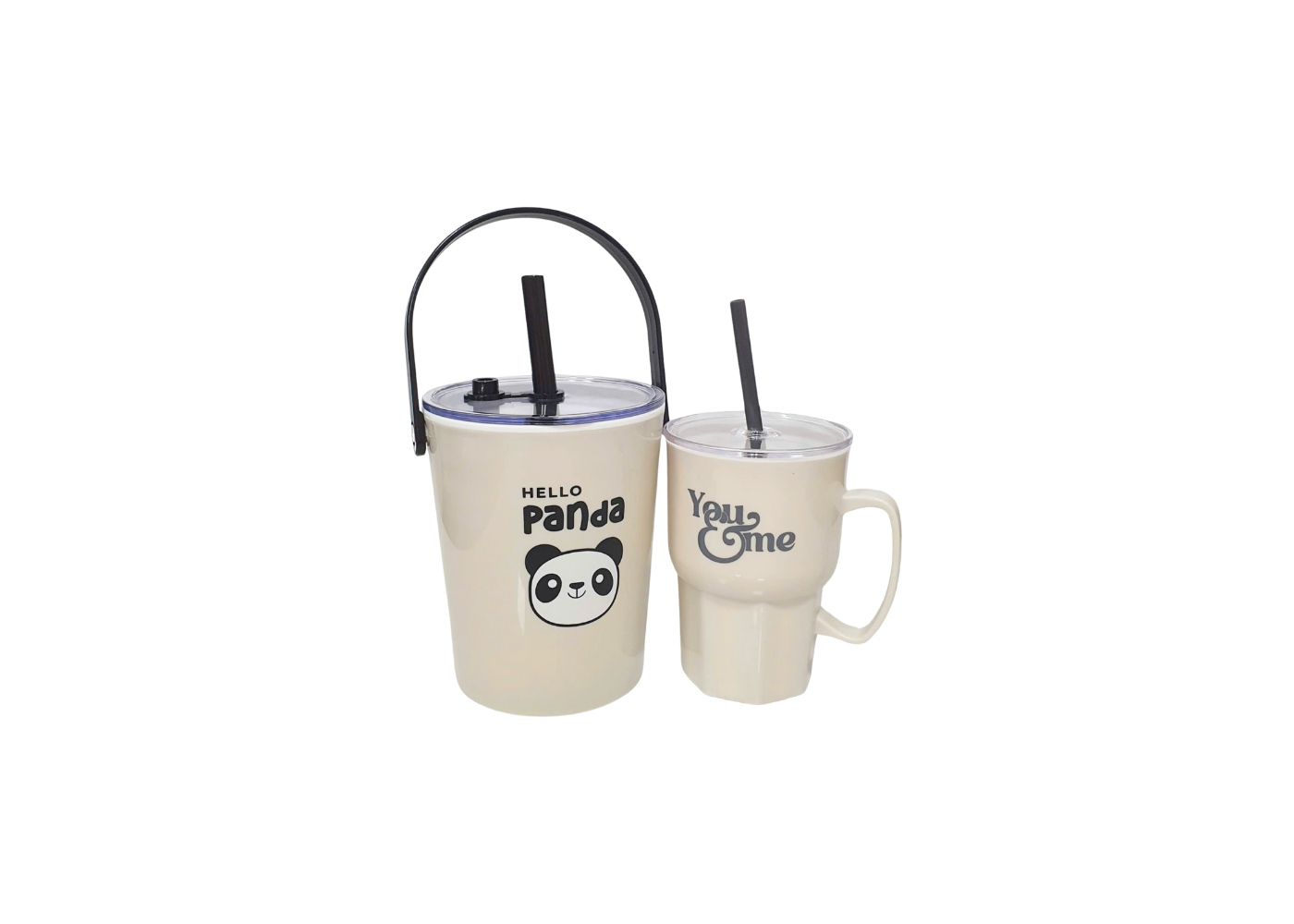 +1 Ly nhựa quai kèm ống hút 550ml