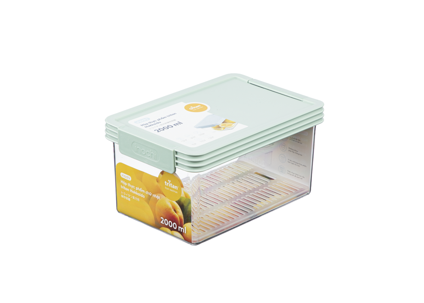 +01 Hộp thực phẩm Tritan chữ nhật Hokkaido 2000ml - 209 x 140 x 109 mm