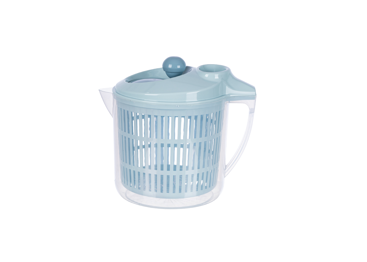 Sản phẩm hoạt động dựa trên nguyên lý lực ly tâm, khi quay, nước sẽ bị đẩy ra ngoài chậu chứa trong suốt, giúp thực phẩm khô ráo hiệu quả.