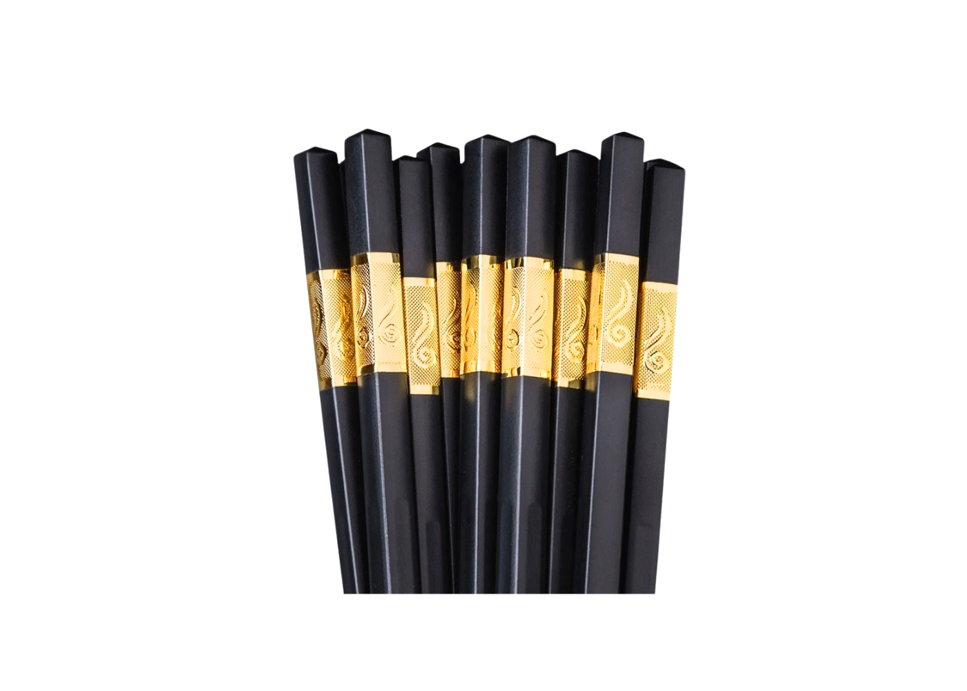 🥢Đuôi đũa được thiết kế bọc viền hoa văn hợp kim cực kỳ tinh tế.