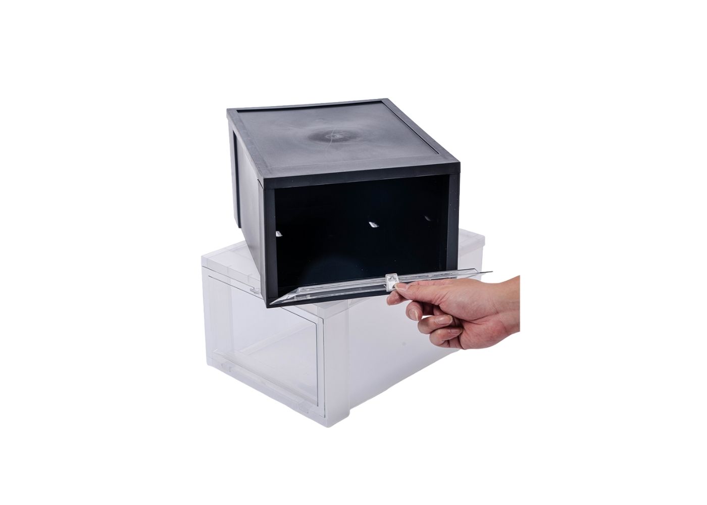 -Thiết kế nắp mở trong suốt, dễ dàng đóng mở để tìm kiếm giày dép.