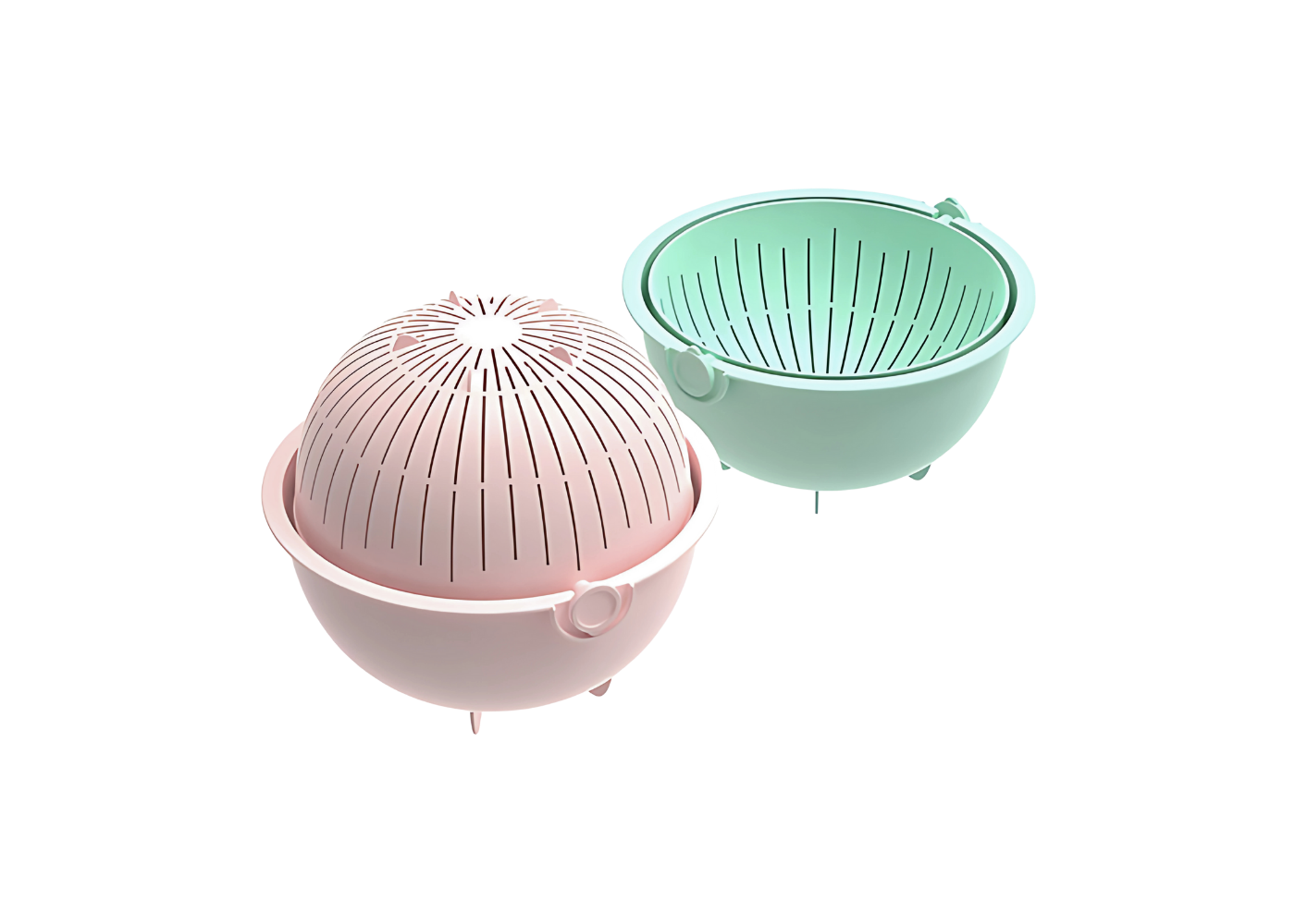 -Sản phẩm có thiết kế thông minh với rổ và thau tách rời, có thể xoay nghiêng giúp nhanh chóng loại bỏ nước ra khỏi rau, trái cây.....một cách dễ dàng.